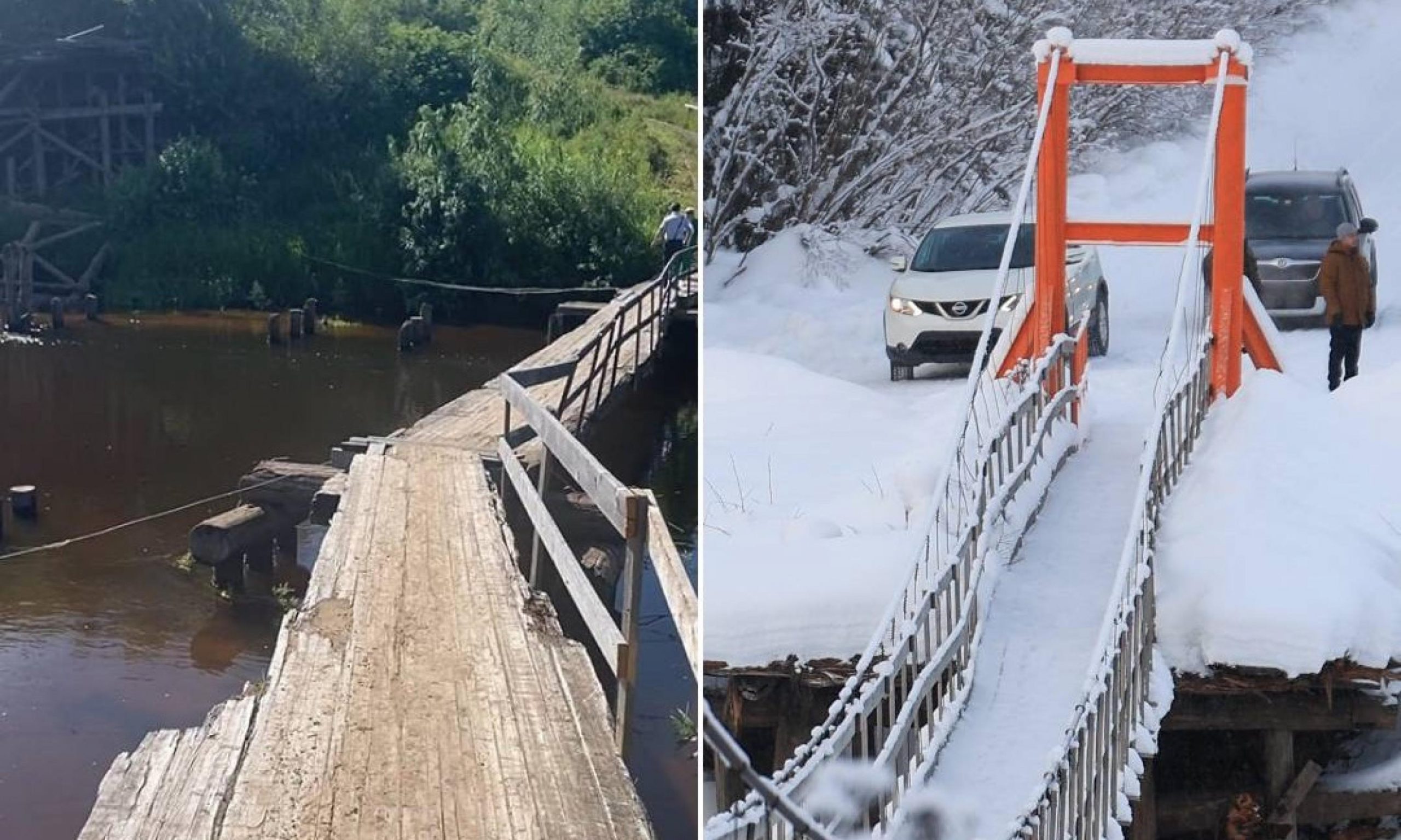 Подвесной пешеходный мост между деревнями Алексеевской и Власьевской построили в рамках проекта «Комфортное Поморье», благодаря чему в период половодья больше не требуется обходить реку почти восемь километров. Как